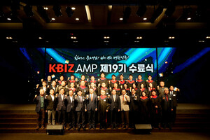 중소기업중앙회는 지난 10일 서울 여의도 중기중앙회에서 KBIZ AMP(중소기업최고경영자과정) 제19기 수료식을 개최했다.이날 행사에는 오기웅 중기중앙회 상근부회장, 이병용 KBIZ AMP 총동문회장(자연과환경 대표), 이신행 KBIZ AMP 총동문회 수석부회장(대성엠디아이 대표)을 비롯한 총동문회 관계자와 19기 수료생 등 60여명이 참석했다.올해로 19기를 맞은 KBIZ AMP는 6개월간 CEO에게 필요한 리더십과 소통, 전략적 사고와 통찰, 경영 에센스, 행복한 CEO 등을 주제로 운영됐다. 정규강좌 15회와 조찬특강, 동문