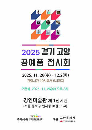 경기공예협동조합(이사장 전진숙)이 오는 11월 26일부터 12월 2일까지 서울 인사동 경인미술관 제1전시장에서 ‘2025 경기 고양 공예품 전시회’를 개최한다.경기북부지역 공예문화의 새로운 장을 여는 이번 전시회는 지역 공예인들의 활발한 교류를 촉진하고, 국내 공예산업 발전에 기여하고자 마련됐다. 특히, 경기공예협동조합과 업무협약(MOU)를 체결한 협력 단체들의 초청 작품들이 특별 초대전 형식으로 함께 선보여 관람객들의 기대를 모으고 있다.이번 전시회에는 경기공예조합 조합원 43명이 참여하며, 이 밖에도 화성시공예사업협동조합, 남양