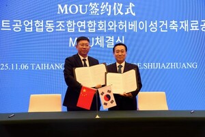 한국콘크리트공업협동조합연합회(회장 김동우)는 지난 11월 6일, 중국 허베이성 태행국빈관 회의장에서 허베이성건축재료공업협회와 한·중 양국 간 콘크리트산업 발전을 위한 업무협약(MOU)을 체결했다. 허베이성건축재료공업협회는 1989년 7월에 설립된 성(省)급 사회단체로, 산업 자원을 통합해 회원사와 정부, 사회 전반에 서비스를 제공하고 허베이성 건축자재 산업의 고품질 발전을 촉진하는 역할을 하고 있다. 건축자재 산업 관련 기관·기업, 연구소, 전문대학, 민간 단체 등으로 구성돼 있으며, 허베이성 10대 주도산업협회 중 하나로 꼽힌다.
