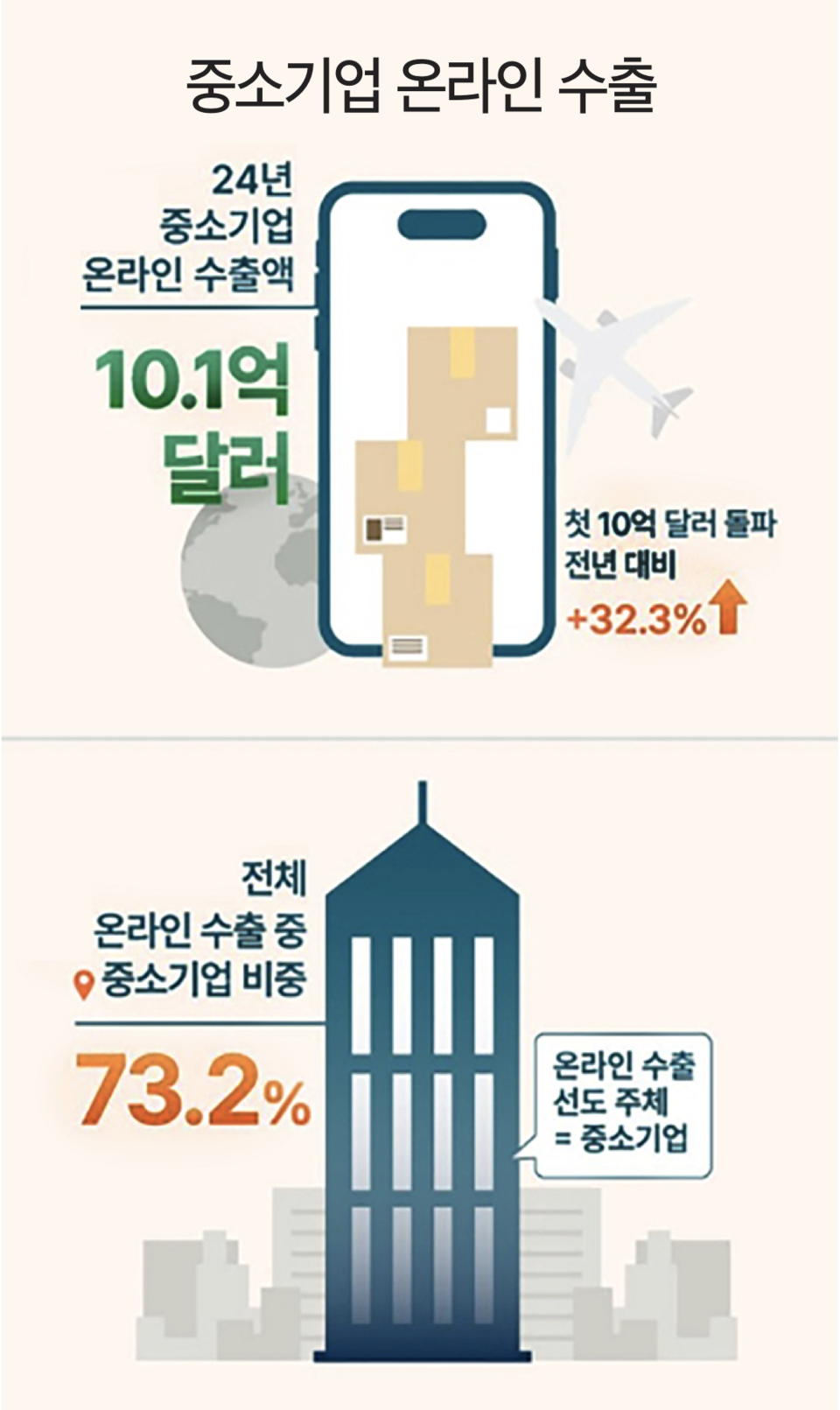 전 세계적으로 전자상거래가 급증하는 가운데 온라인 시장은 비교적 적은 비용으로 큰 리스크 없이 진입할 수 있어 수출 초보기업에 글로벌 시장 개척의 핵심 경로가 되고 있다. 그러나 최근 미국이 해외에서 배송되는 800달러(약 117만원) 이하의 ‘소액 소포’에 대해 관세를 부과하면서 화장품, 의류, 문구·완구 등 온라인 거래 비중이 높은 품목 중심으로 피해가 커지고 있어 정부 대응책이 마련됐다.